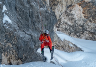 Unterbrochen wird die bis über 40 Grad steile Abfahrt von einer 60 Meter langen Abseilstelle. So erfordert die Tour nicht nur eine sichere Skitechnik, sondern auch alpines Know-How. Unser Bergführer führt Dich durch eine anspruchsvolle und sehr eindrucksvolle Freeride-Abfahrt, die Dir definitiv lange in Erinnerung bleiben wird.